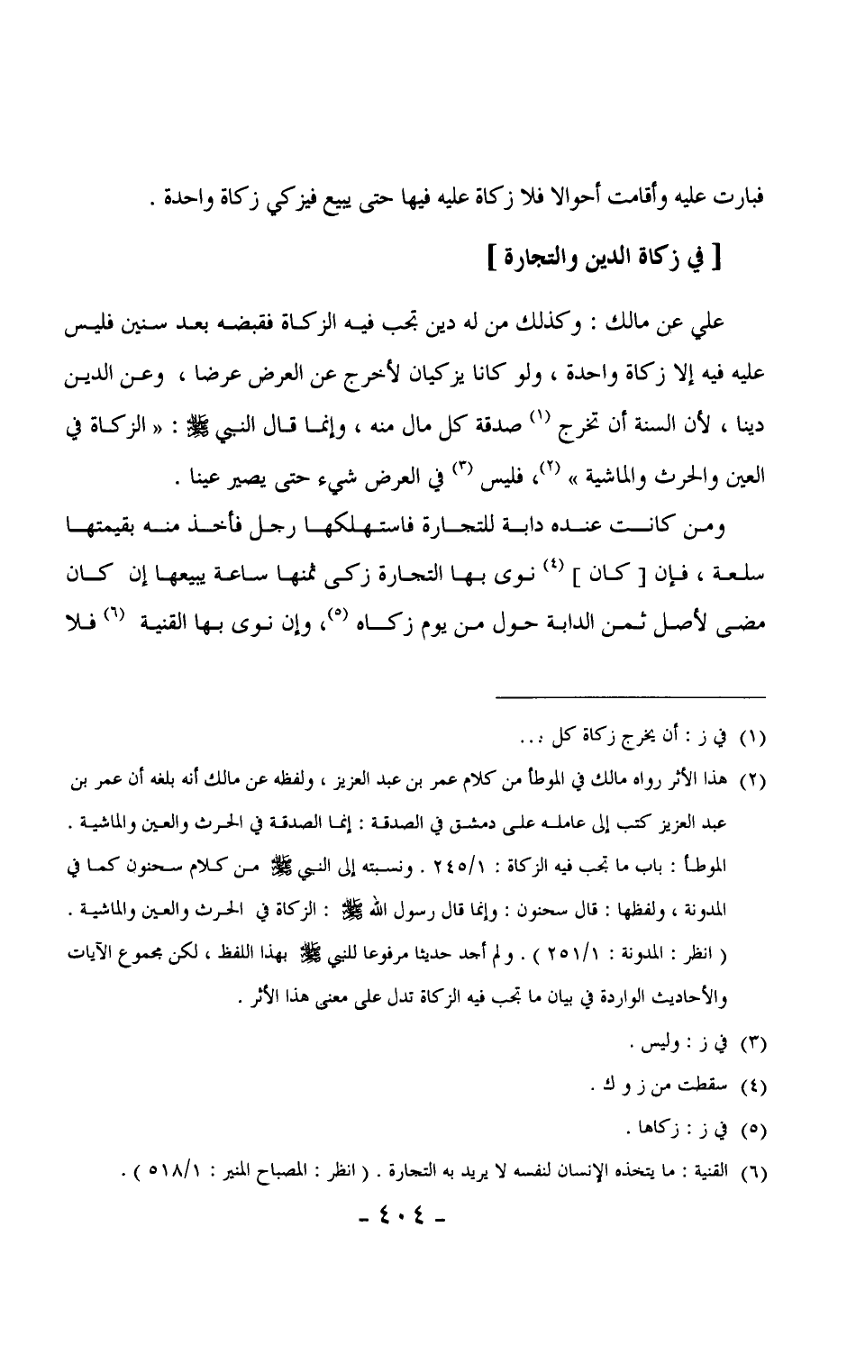 (¬1) رواه مالك في الموطأ، (3 - الزكاة) .