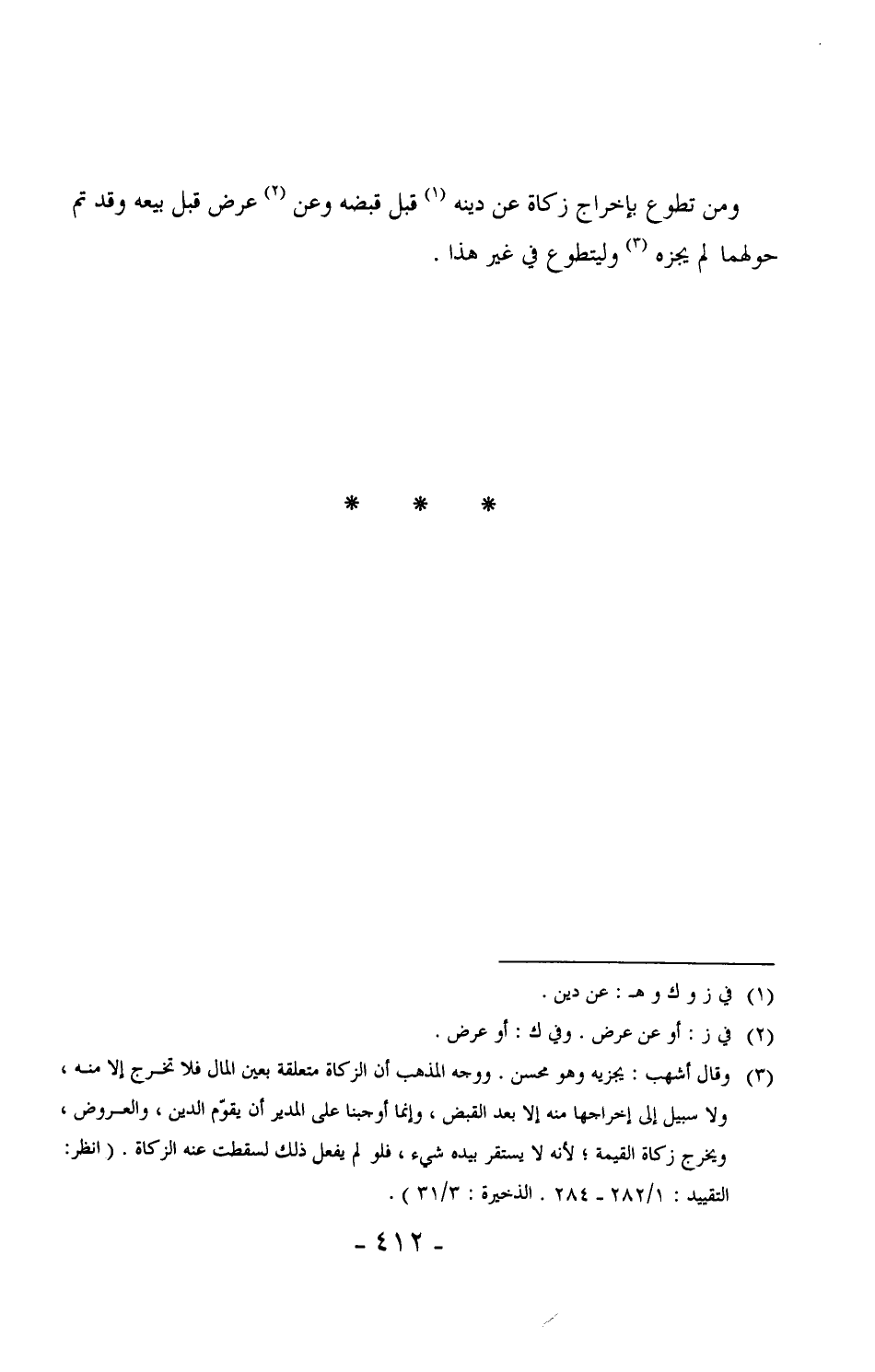 ومن تطوع بإخراج زكاة عن دينه قبل قبضه وعن عرض قبل بيعه وقد تم حولهما لم يجزه وليتطوع في غير هذا.