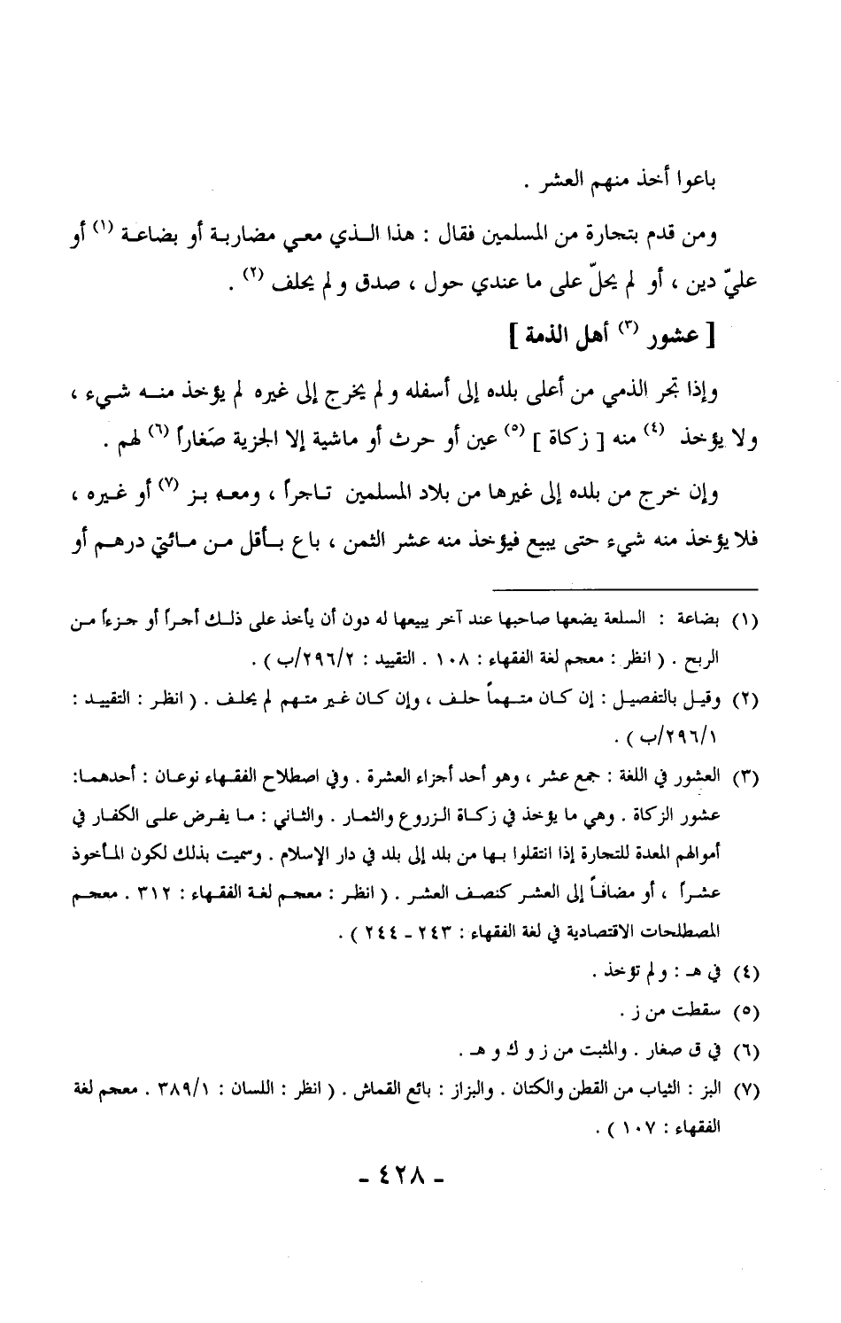 576 - وإذا تجر الذمي من أعلى بلده على أسفله ولم يخرج إلى غيره لم يؤخذ منه شيء، ولا يؤخذ منه [زكاة] عين أو حرث أو ماشية إلا الجزية صَغاراً لهم.