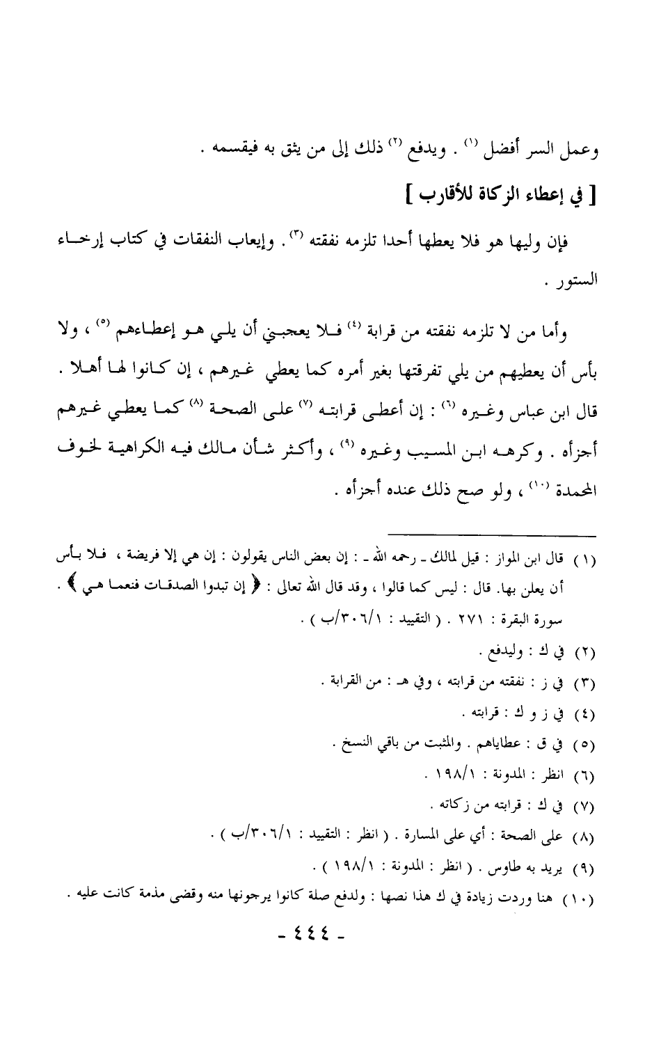 وأما من لا تلزمه نفقته من قرابة فلا يعجبني أن يلي هو إعطاءهم، ولا بأس أن يعطيهم من يلي تفرقتها بغير أمره كما يعطي غيرهم، إن كانوا لها أهلاً. قال ابن عباس وغيره: إن أعطى قرابته على الصحة كما يعطي غيرهم أجزأه. وكرهه ابن المسيب وغيره، وأكثر شأن مالك فيه الكراهية لخوف المحمدة، ولدفع صلة كانوا يرجونها منه وقضى مذمة كانت عليه، ولو صح ذلك عنده أجزأه.