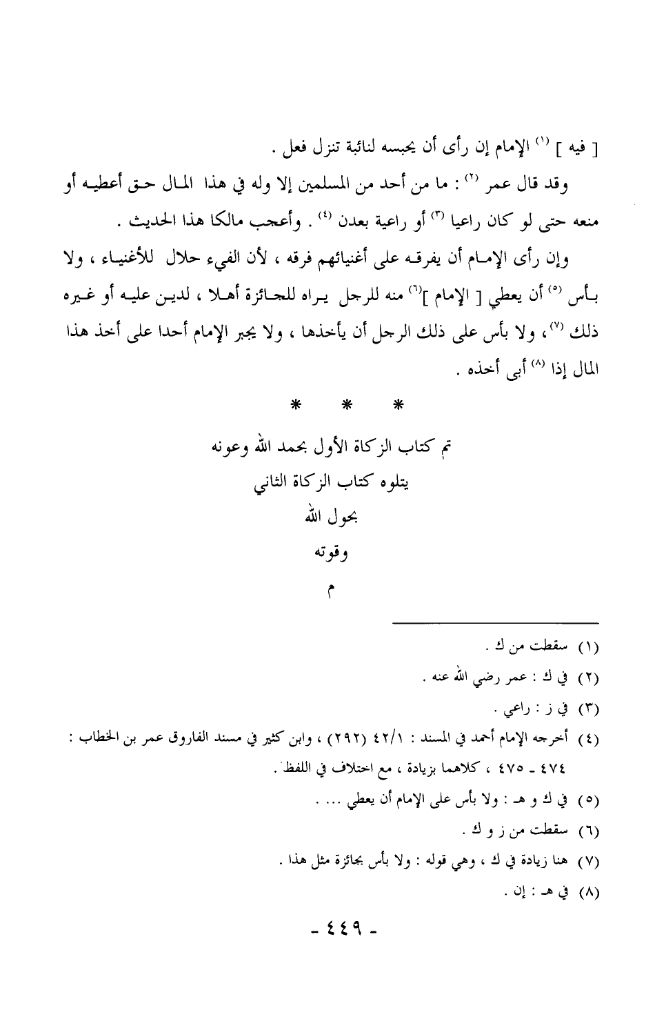 "تم كتاب الزكاة الأول بحمد الله وعونه