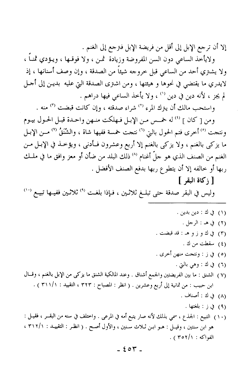 616 - ومن [كان] له خمس من الإبل فهلكت منهن واحدة قبل الحول بيوم ونتجت أخرى فتم الحول بالتي نتجت خمسة ففيها شاة، والشّنَق من الإبل ما يزكى بالغنم، ولا يزكى بالغنم إلا أربع وعشرون فأدنى، ويؤخذ في الإبل من الغنم من الصنف الذي هو جلّ أغنام ذلك البلد من ضان أو معز وافق ما في ملك ربها، أو خالفه إلا أن يتطوع ربها بدفع الصنف الأفضل.