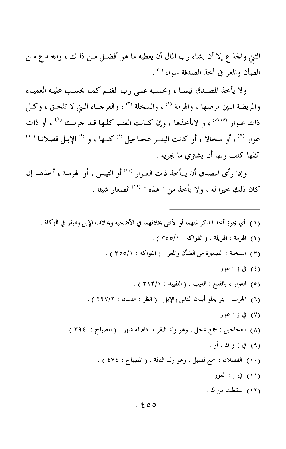 621 - وإذا رأى المصدق أن يأخذ ذات العوار أو التيس، أو الهرمة، أخذها إن كان ذلك خيراً له، ولا يأخذ من [هذه] الصغار شيئاً.