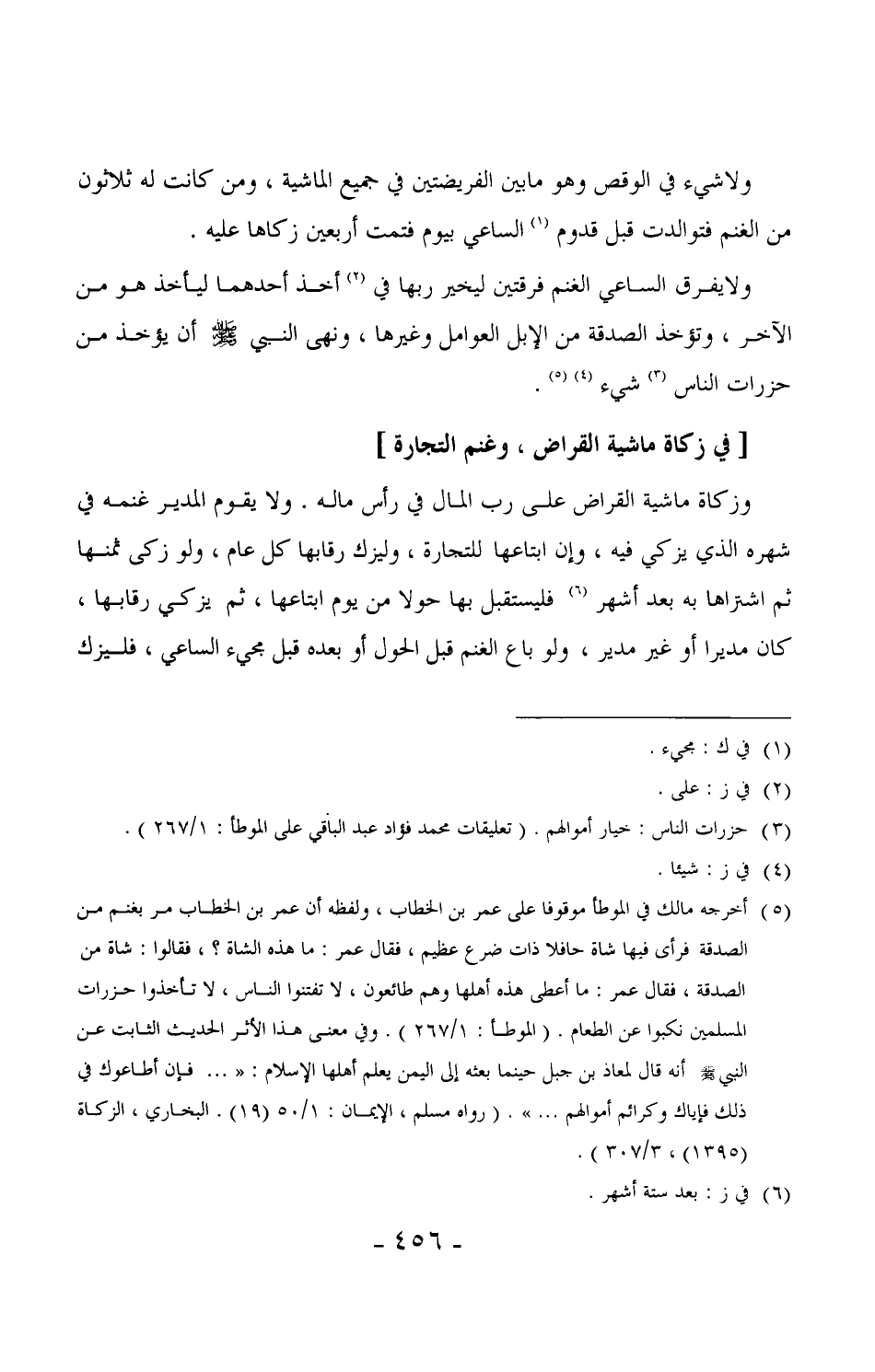624 - وزكاة ماشية القراض على رب المال في رأس ماله. ولا يقوم المدبر غنمه في شهره الذي يزكي فيه، وإن ابتاعها للتجارة، وليزك رقابها كل عام، ولو زكى ثمنها ثم اشتراها به بعد أشهر فليستقبل بها حولاً من يوم ابتاعها، ثم يزكي رقابها، كان مدبراً أو غير مدبر، ولو باع الغنم قبل الحول أو بعده قبل مجيء الساعي، فليزك