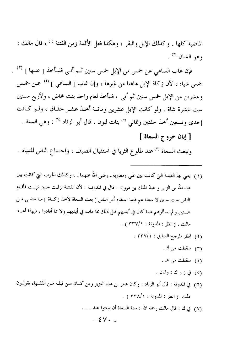 الماضية كلها. وكذلك الإبل والبقر، وهكذا فعل الأئمة زمن الفتنة، قال مالك: وهو الشان.