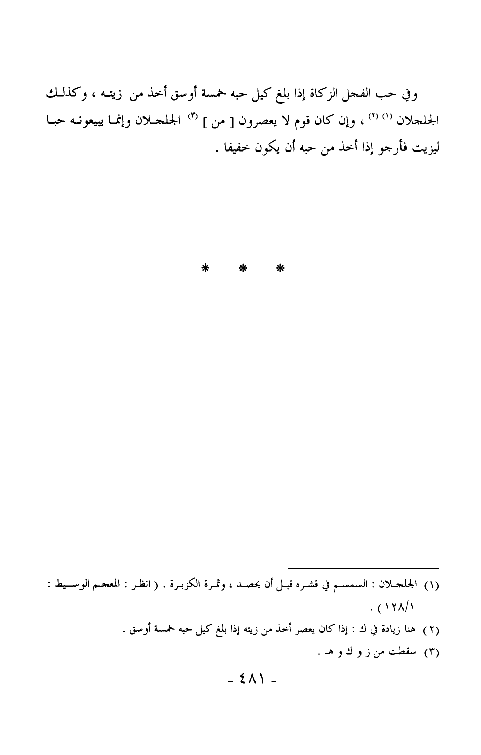 وفي حب الفجل الزكاة إذا بلغ كيل حبه خمسة أوسق أخذ من زيته، وكذلك الجلجلان إذا كان يعصر أخذ من زيته إذا بلغ كيل حبه خمسة أوسق، وإن كان قوم لا يعصرون [من] الجلجلان وإنما يبيعونه حباً لزيت فأرجو إذا أخذ من حبه أن يكون خفيفاً.