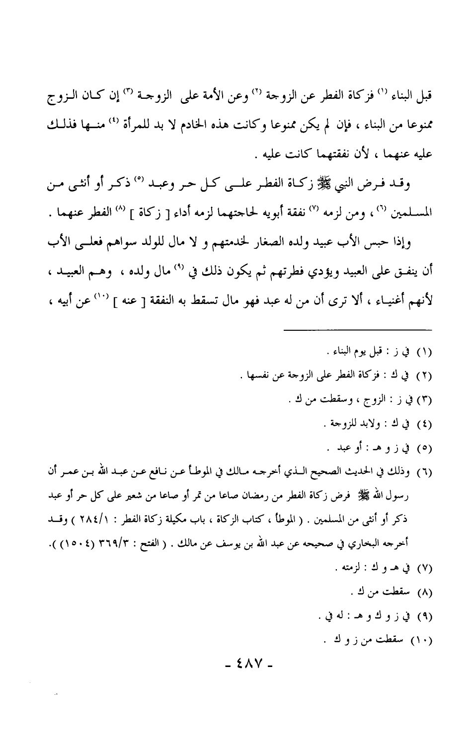 قبل البناء فزكاة لفطر عن الزوجة وعن الأمة على الزوجة إن كان الزوج ممنوعاً من البناء، فإن لم يكن ممنوعاً وكانت هذه الخادم لا بد للمرأة منها فذلك عليه عنهما، لأن نفقتهما كانت عليه.