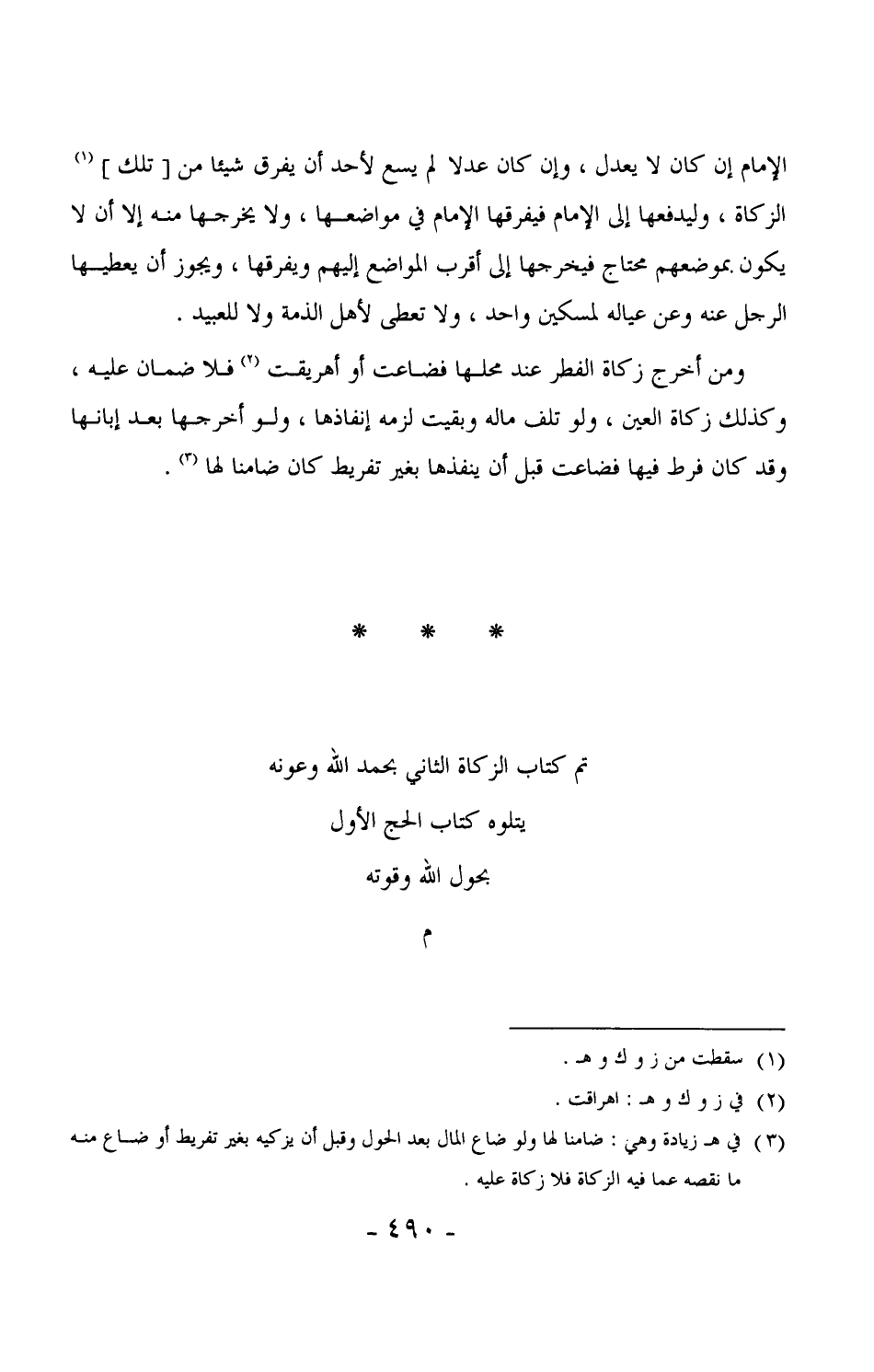 693 - ومن أخرج زكاة الفطر عند محلها فضاعت أو أُهريقت فلا ضمان عليه، وكذلك زكاة العين، ولو تلف ماله وبقيت لزمه إنفاذها، ولو أخرجها بعد إبانها وقد كان فرط فيها فضاعت قبل أن ينفذها بغير تفريط كان ضامناً لها.