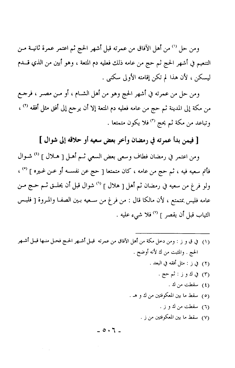 728 - ومن اعتمر في رمضان فطاف وسعى بعض السعي ثم أهل [هلال] شوال فأتم سعيه فيه، ثم حج من عامه، كان متمتعاً [حج عن نفسه أو عن غيره] ، ولو فرغ من سعيه في رمضان ثم أهل [هلال] شوال قبل أن يحلق ثم حج من عامه فليس بمتمتع، لأن مالكاً قال: من فرغ من سعيه بين الصفا والمروة [فلبس الثياب قبل أن يقصر] فلا شيء عليه.