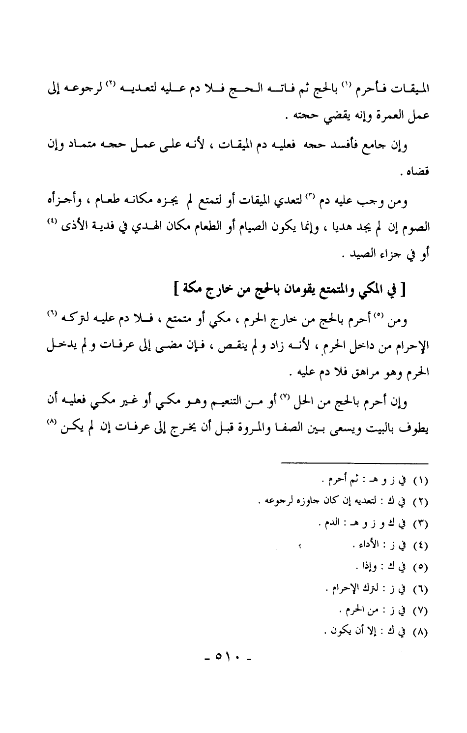 739 - ومن أحرم بالحج من خارج الحرم، مكي أو متمتع، فلا دم عليه لتركه الإحرام من داخل الحرم، لأنه زاد ولم ينقص، فإن مضى إلى عرفات ولم يدخل الحرم وهو مراهق فلا دم عليه.