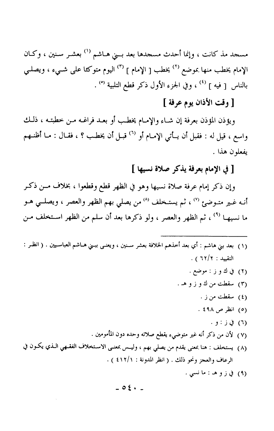 803 - وإن ذكر إمام عرفة صلاة نسيها وهو في الظهر قطع وقطعوا، بخلاف من ذكر أنه غير متوضئ، ثم يستخلف من يصلي بهم الظهر والعصر، ويصلي هو ما نسيها، ثم الظهر والعصر، ولو ذكرها بعد أن سلم من الظهر استخلف من
