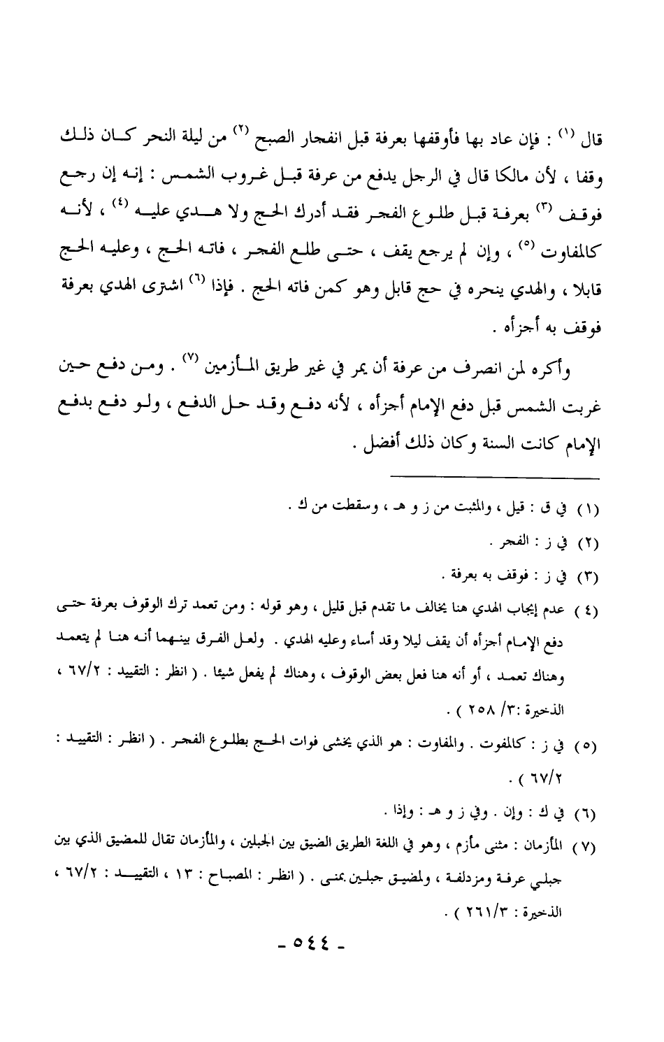 810 - وأكره لمن انصرف من عرفة أن يمر في غير طريق المأزمين. ومن دفع حين غربت الشمس قبل دفع الإمام أجزأه، لأنه دفع وقد حل الدفع، ولو دفع بدفع الإمام كانت السنة وكان ذلك أفضل.