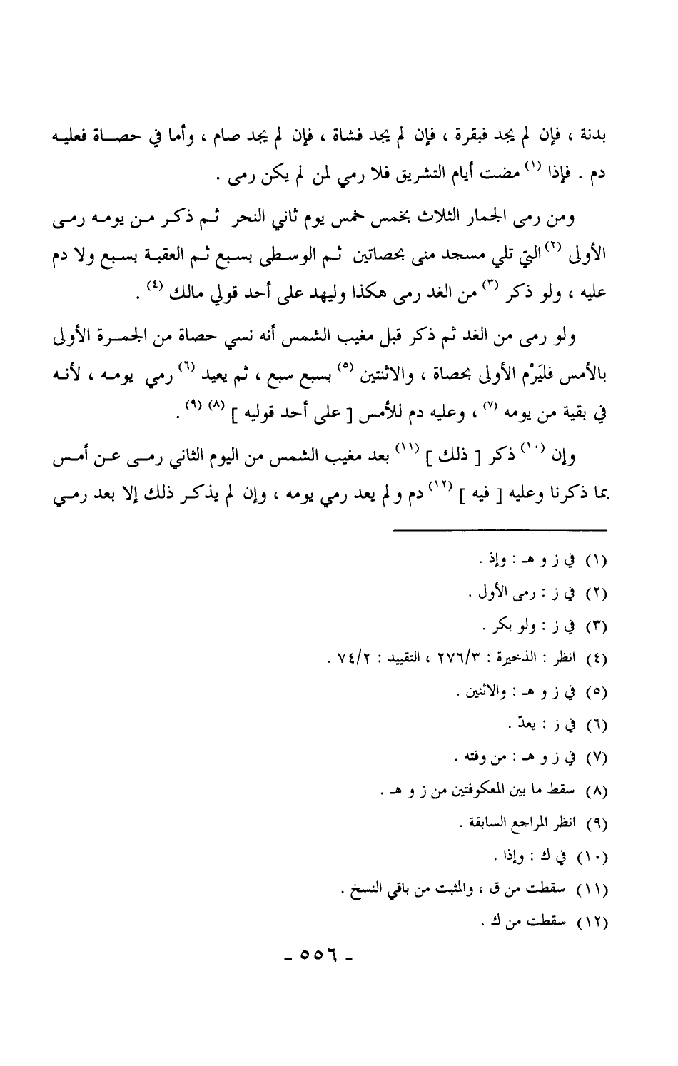 841 - ولو رمى من الغد ثم ذكر قبل مغيب الشمس أنه نسي حصاة من الجمرة الأولى بالأمس فليرم الأولى بحصاة، والاثنتين بسبع سبع، ثم يعيد رمي يومه، لأنه في بقية من يومه، وعليه دم للأمس [على أحد قوليه] .
