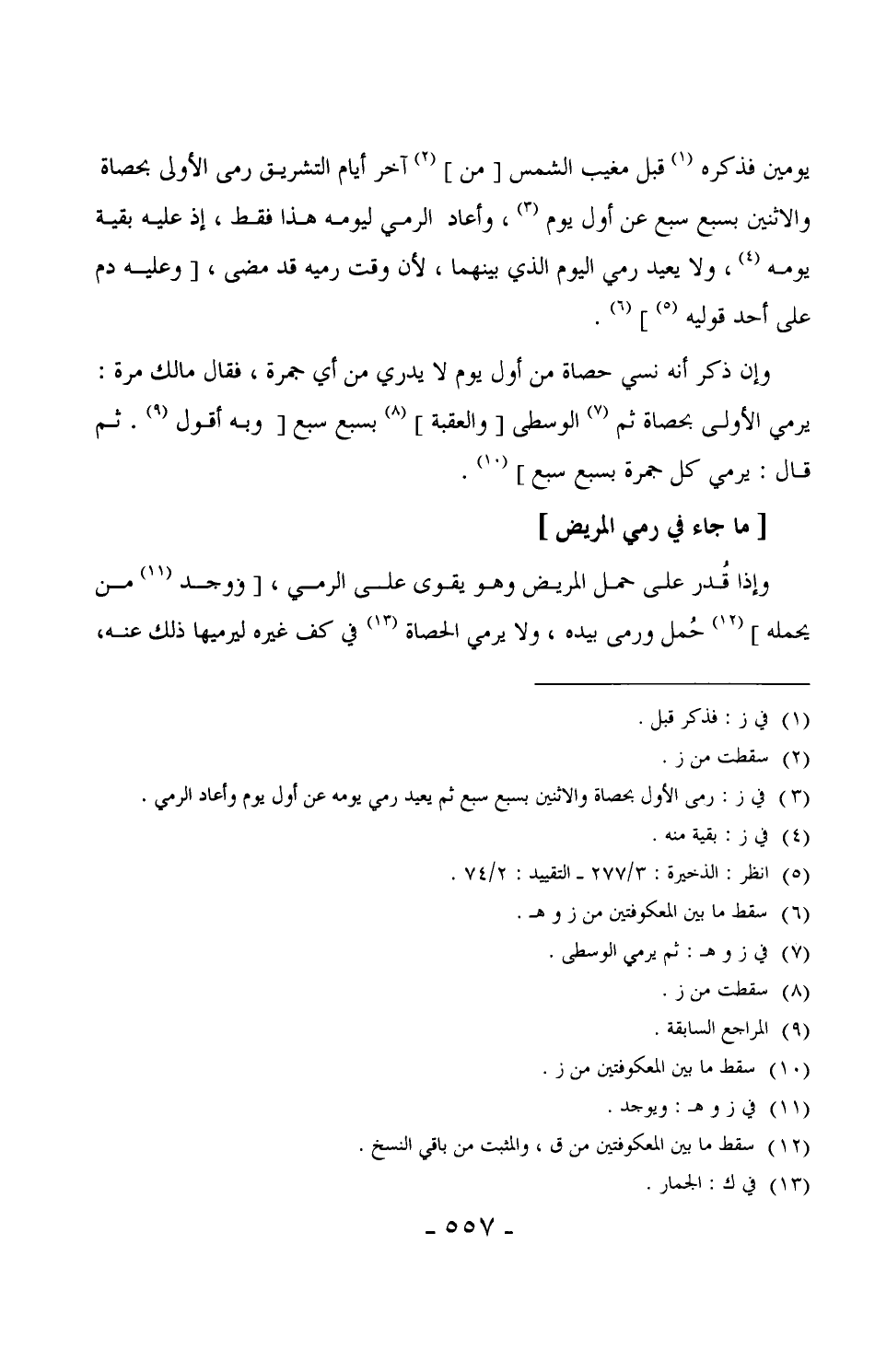 842 - وإن ذكر أنه نسي حصاة من أول يوم لا يدري من أي جمرة، فقال مالك مرة: يرمي الأولى بحصاة ثم الوسطى [والعقبة] بسبع سبع [وبه أقول. ثم قال: يرمي كل جمرة بسبع سبع] .
