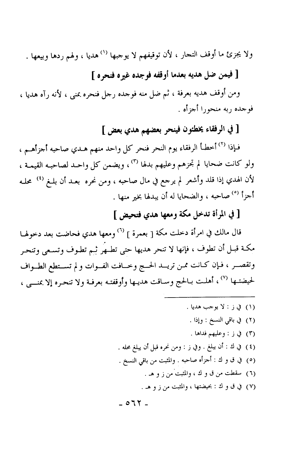 856 - فإذا أخطأ الرفقاء يوم النحر فنحر كل واحد منهم هدي صاحبه أجزأهم، ولو كانت ضحايا لم تجزهم وعليهم بدلها، ويضمن كل واحد لصاحبه القيمة، لأن الهدي إذا قلد وأشعر لم يرجع في مال صاحبه، ومن نحره بعد أن بلغ محله أجزأ صاحبه، والضحايا له أن يبدلها بخير منها.