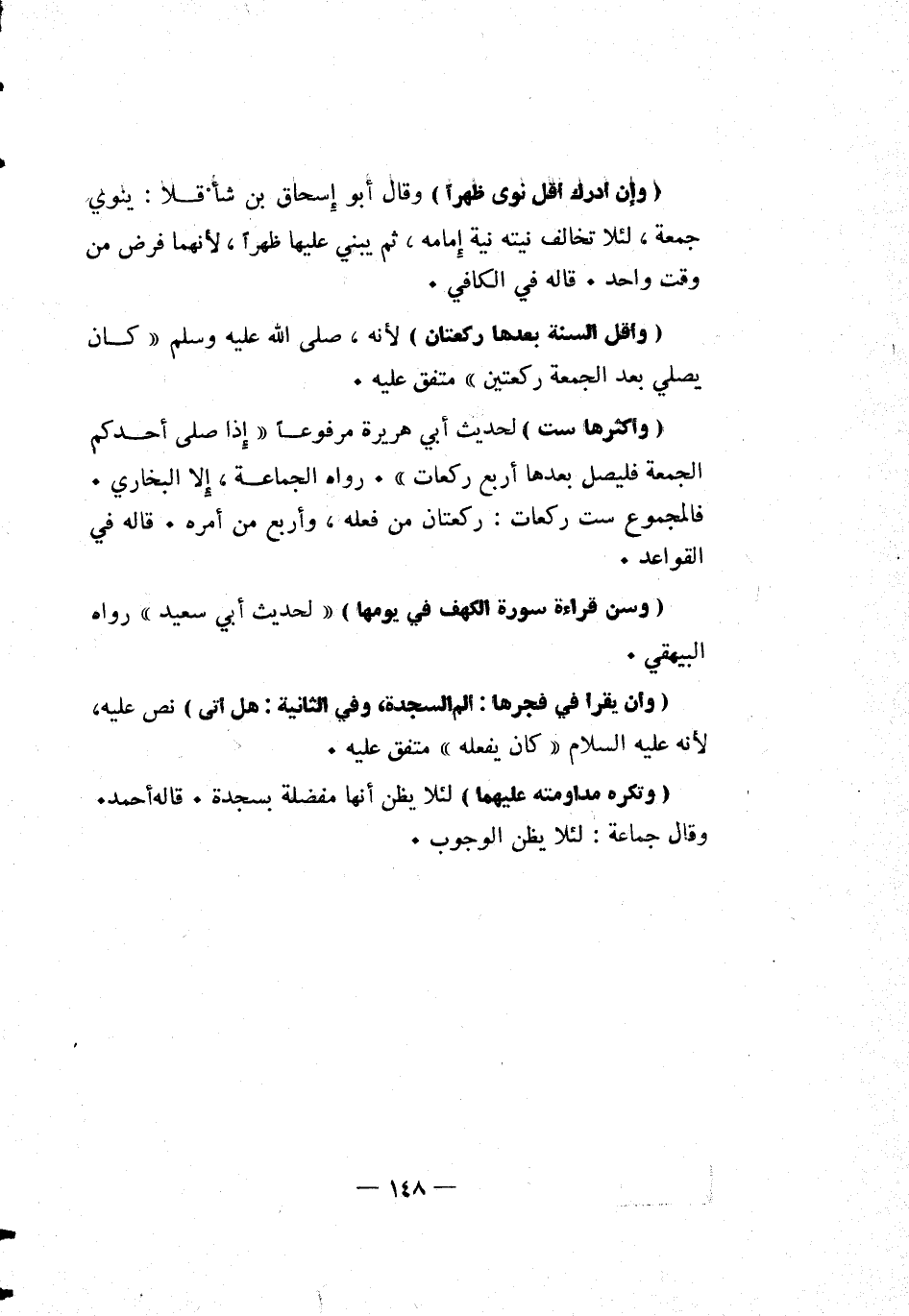 [ويسن قراءة سورة الكهف في يومها] لحديث أبي سعيد رواه البيهقي.