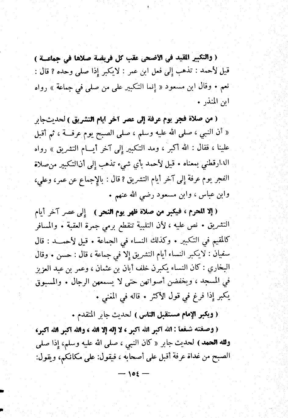 [والتكبير المقيد في الأضحى عقب كل فريضة صلاها في جماعة] قيل لأحمد: تذهب إلى فعل ابن عمر: لا يكبر إذا صلى وحده؟ قال: نعم. وقال ابن مسعود: إنما التكبير على من صلى في جماعة رواه ابن المنذر.