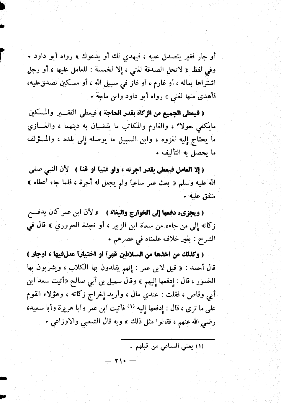 [وكذلك من أخذها من السلاطين قهراً أواختياراً عدل فيها، أو جار] قال أحمد: قيل لابن عمر: إنهم يقلدون بها الكلاب، ويشربون بها الخمور، قال: ادفعها إليهم وقال سهيل بن أبي صالح: أتيت سعد بن أبي وقاص، فقلت: عندي مال، وأريد إخراج زكاته، وهؤلاء القوم على ما ترى، قال: ادفعها إليه1 فأتيت ابن عمر وأبا هريرة وأبا سعيد، رضي الله عنهم، فقالوا مثل ذلك وبه قال الشعبي والأوزاعي.