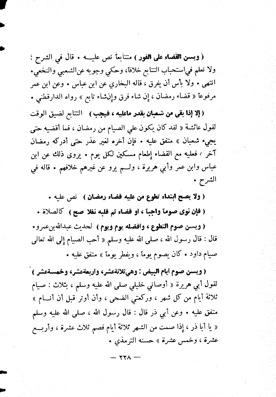 [ويسن صوم أيام البيض: وهي ثلاثة عشر، وأربعة عشر، وخمسة عشر] لقول أبي هريرة أوصاني خليلي صلى الله عليه وسلم، بثلاث: "صيام ثلاثة أيام من كل شهر وركعتي الضحى، وأن أوتر قبل أن أنام" متفق عليه. وعن أبي ذر قال: قال رسول الله صلى الله عليه وسلم: "يا أبا ذر، إذا صمت من الشهر ثلاثة أيام فصم ثلاث عشرة، وأربع عشرة، وخمس عشرة" حسنه الترمذي.