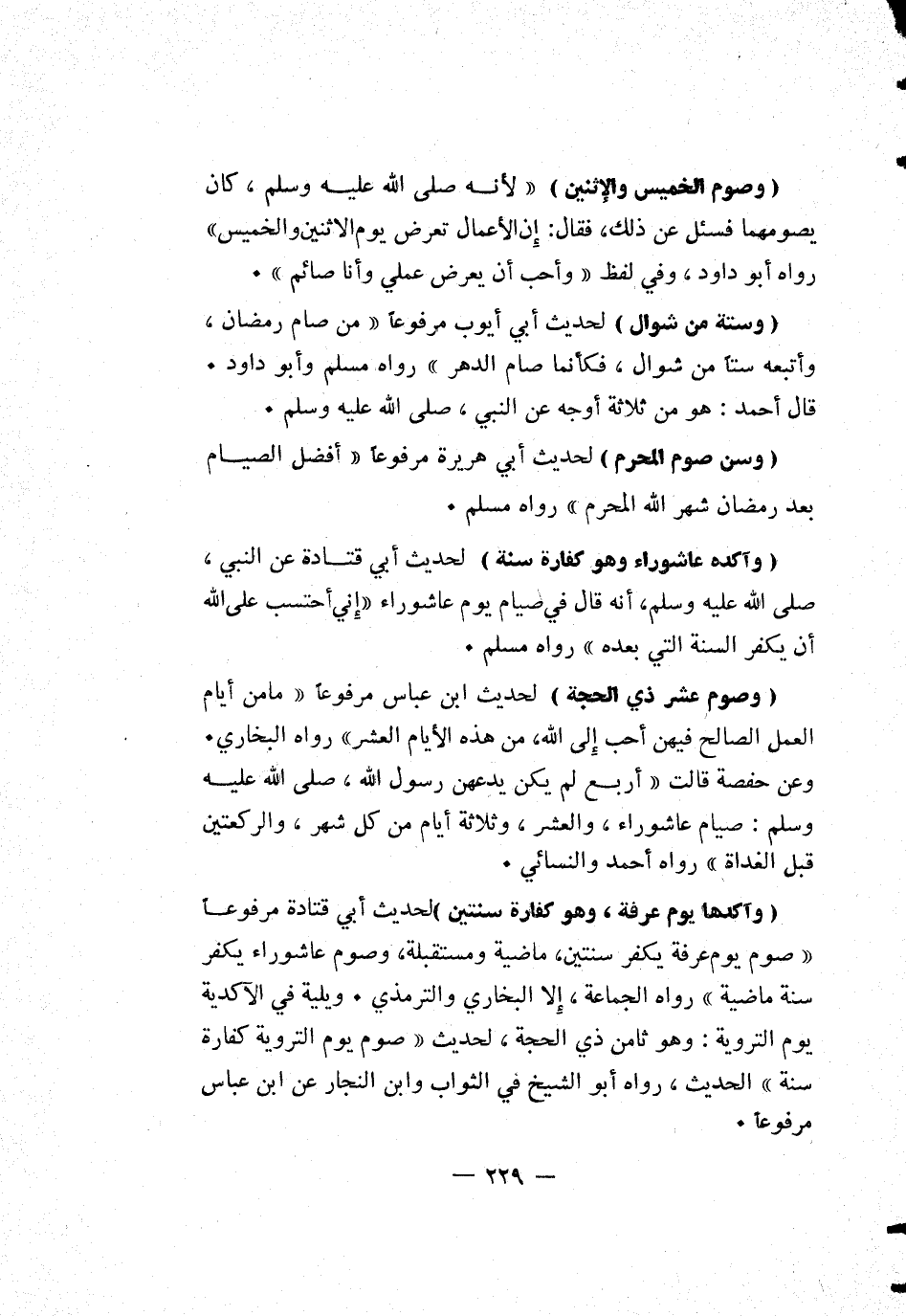 [وصوم الخميس والإثنين] لأنه صلى الله عليه وسلم، كان يصومهما فسئل عن ذلك، فقال: "إن الأعمال تعرض يوم الإثنين والخميس" رواه أبو داود، وفي لفظ: "وأحب أن يعرض عملي وأنا صائم".