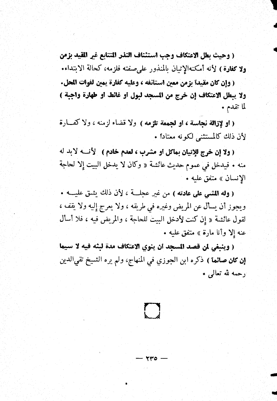 [وينبغي لمن قصد المسجد أن ينوي الإعتكاف مدة لبثه فيه لا سيما إن كان صائماً] ذكره ابن الجوزي في المنهاج، ولم يره الشيخ تقي الدين رحمه الله تعالى.