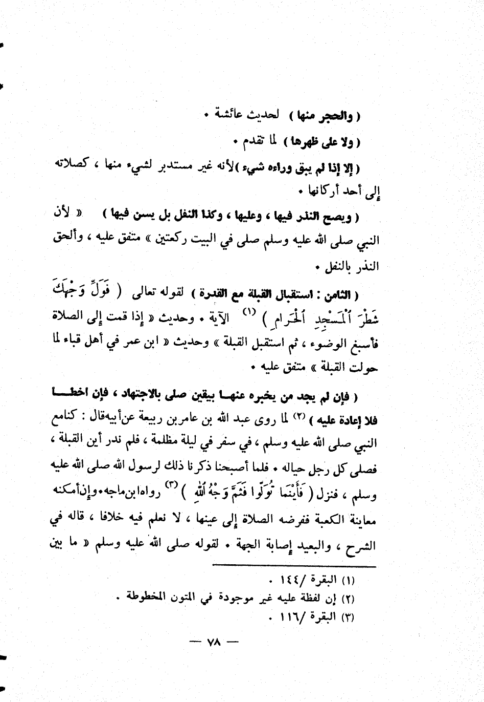 [الثامن: استقبال القبلة مع القدرة] لقوله تعالى: {فَوَلِّ وَجْهَكَ شَطْرَ الْمَسْجِدِ الْحَرَامِ} 1 الآية. وحديث "إذا قمت إلى الصلاة فأسبغ الوضوء، ثم استقبل القبلة" وحديث ابن عمر في أهل قباء لما حولت القبلة متفق عليه.