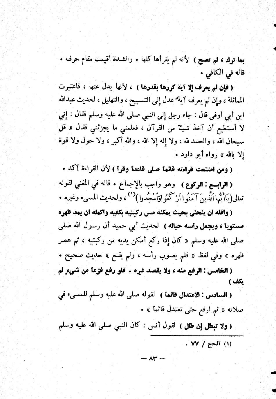 [الرابع: الركوع] وهو واجب بالإجماع. قاله في المغني لقوله تعالى: {يَا أَيُّهَا الَّذِينَ آمَنُوا ارْكَعُوا وَاسْجُدُوا} 1 [الحج: 77] ، ولحديث المسىء وغيره.
