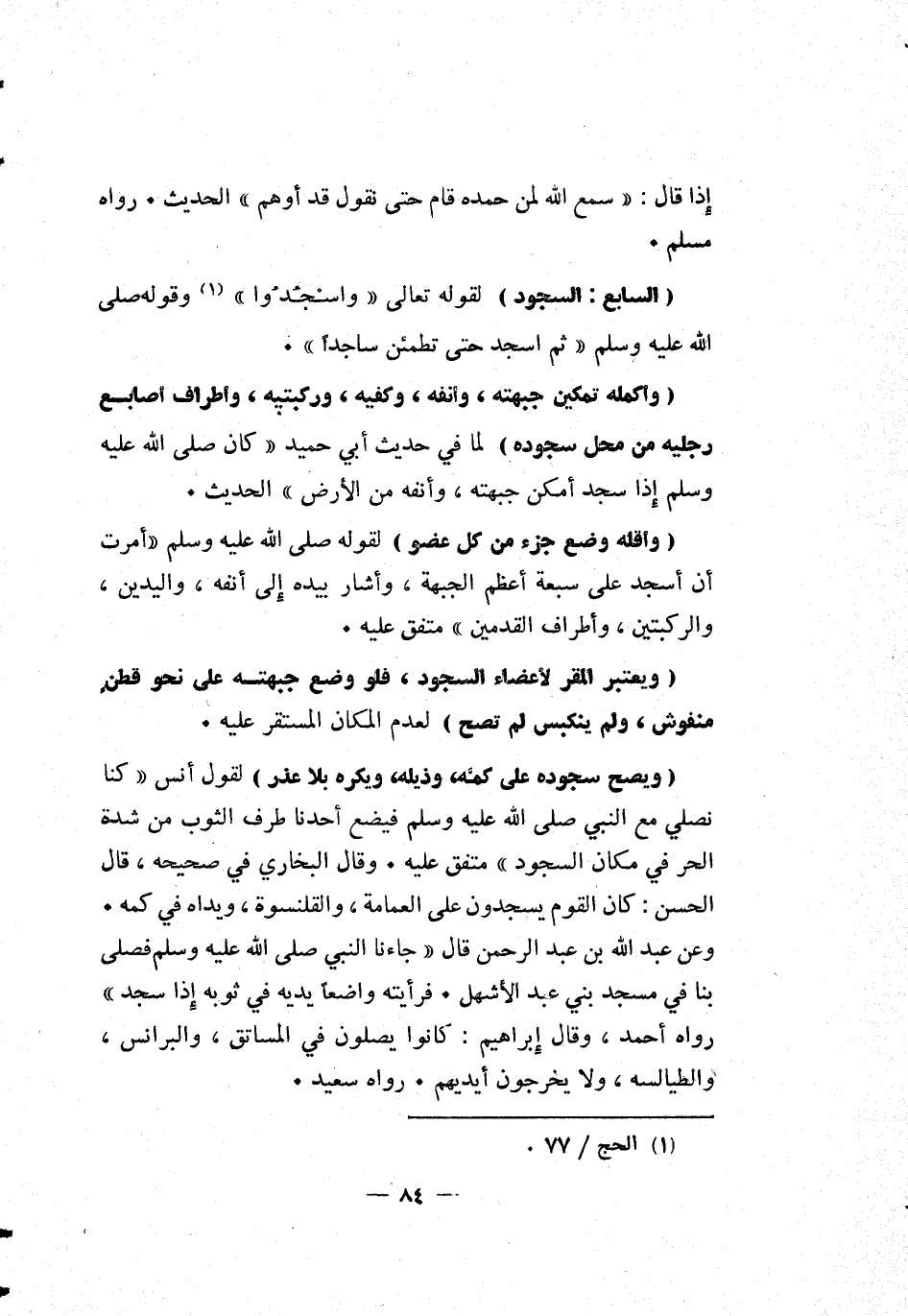 [السابع: السجود] لقوله تعالى: {وَاسْجُدُوا} 1 [الحج: 77] وقوله صلى الله عليه وسلم "ثم اسجد حتى تطمئن ساجداً".