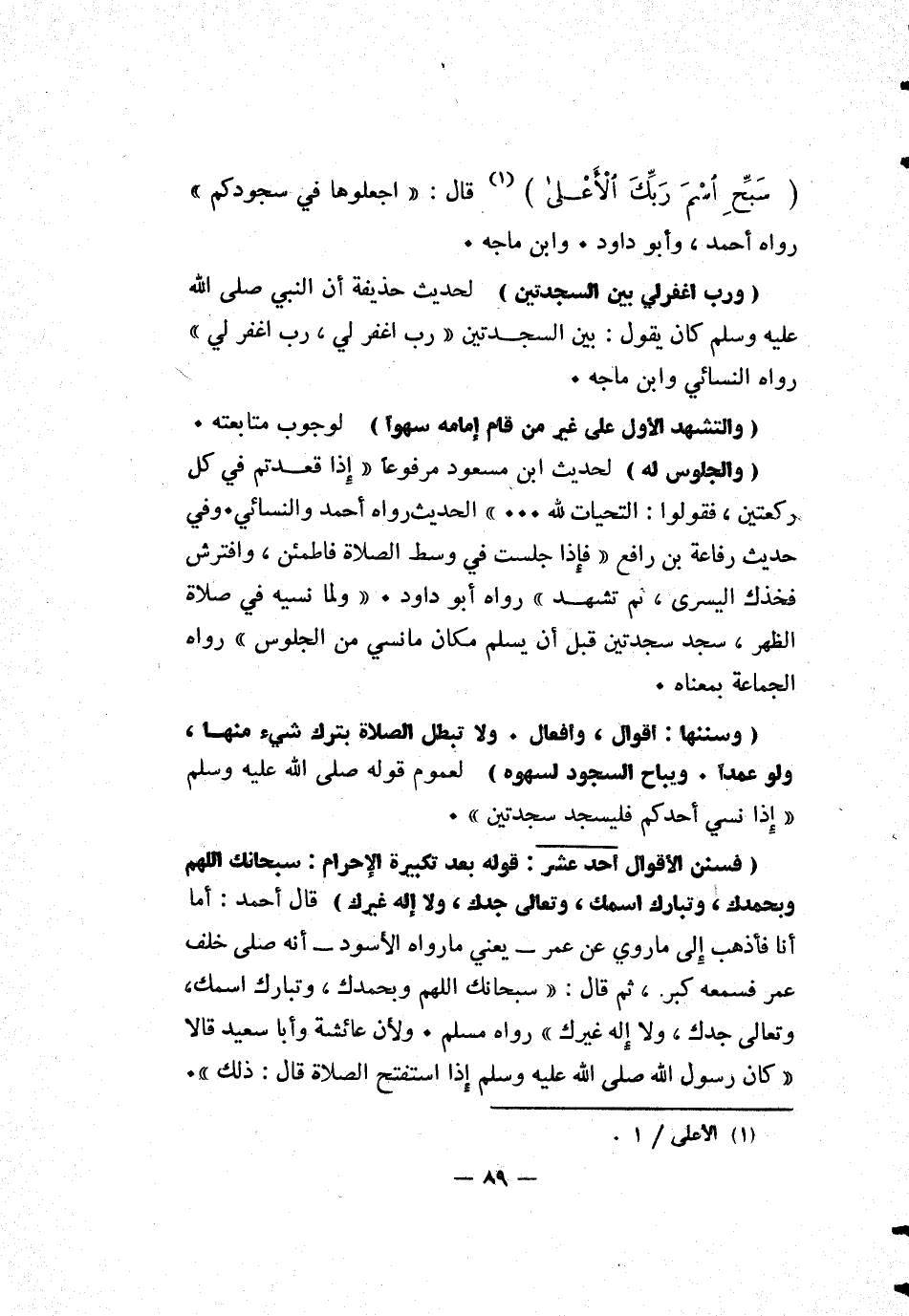 {سَبِّحِ اسْمَ رَبِّكَ الْأَعْلَى} 1 قال: "اجعلوها في سجودكم" رواه أحمد، وأبو داود. وابن ماجه.