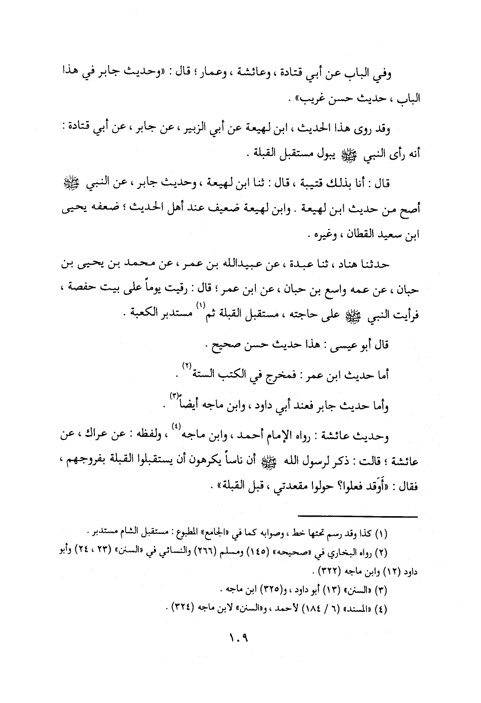 وحديث عائشة: رواه الإمام أحمد، وابن ماجه (¬4)، ولفظه: عن عراك، عن عائشة؛ قالت: ذكر لرسول الله - صلى الله عليه وسلم - أن ناسًا يكرهون أن يستقبلوا القبلة بفروجهم، فقال: "أَوَقد فعلوا؟ حولوا مقعدتي، قبل القبلة".