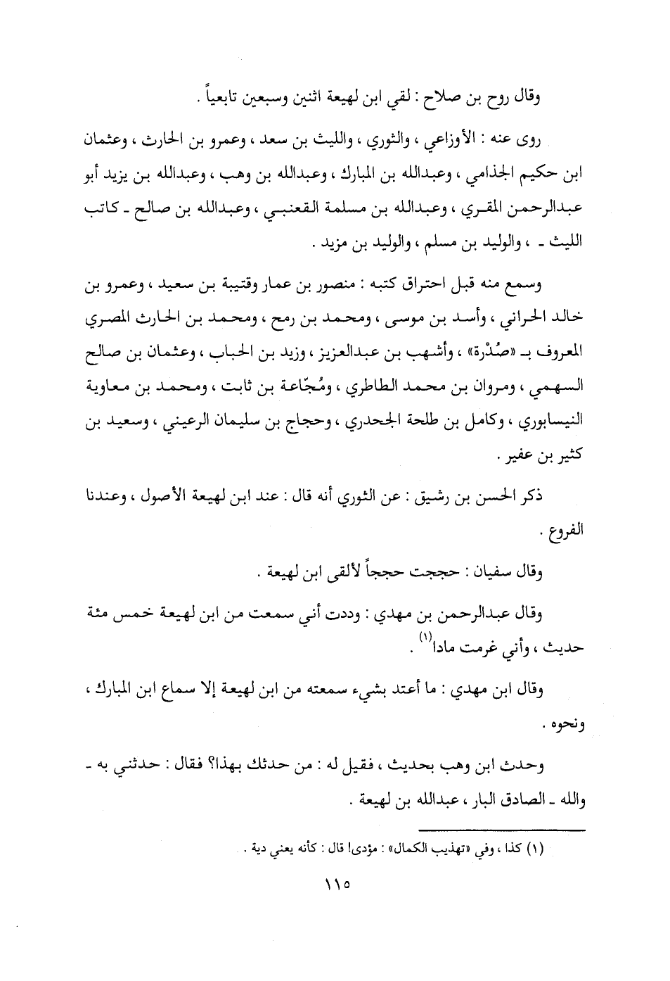 وقال عبد الرحمن بن مهدي: وددت أني سمعت من ابن لهيعة خمس مئة حديث، وأني غرمت مادا (¬1).