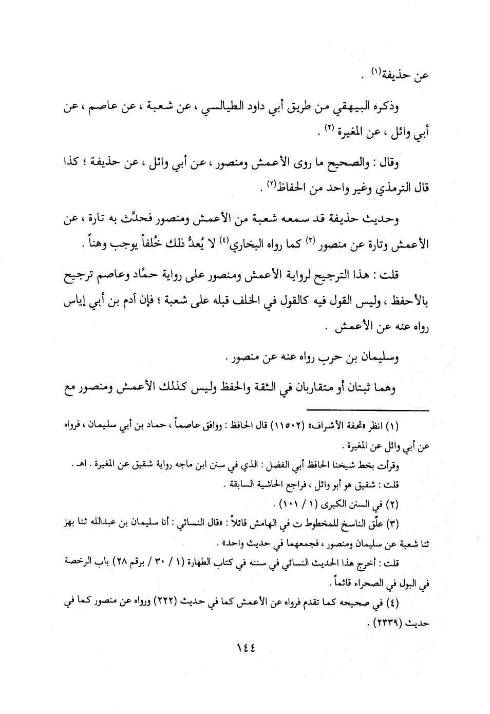 وقال: والصحيح ما روى الأعمش ومنصور، عن أبي وائل، عن حذيفة؛ كذا قال الترمذي وغير واحد من الحفاظ (2).