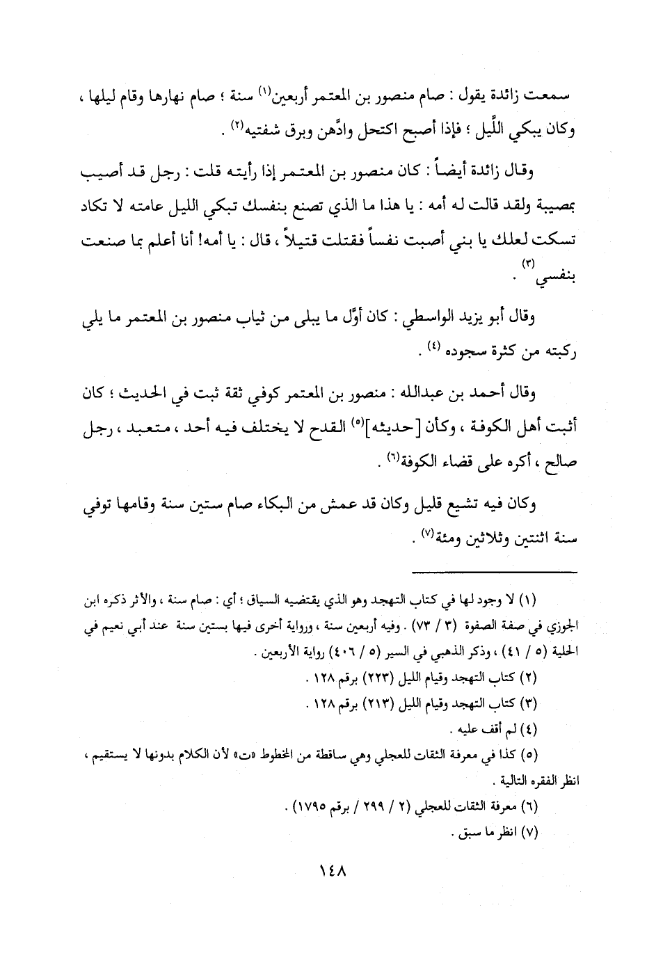 (¬1) لا وجود لها في كتاب التهجد وهو الذي يقتضيه السياق؛ أي: صام سنة، والأثر ذكره ابن الجوزي في صفة الصفوة (3/ 73). وفيه أربعين سنة، ورواية أخرى فيها بستين سنة عند أبي نعيم في الحلية (5/ 41)، وذكر الذهبي في السير (5/ 406) رواية الأربعين.