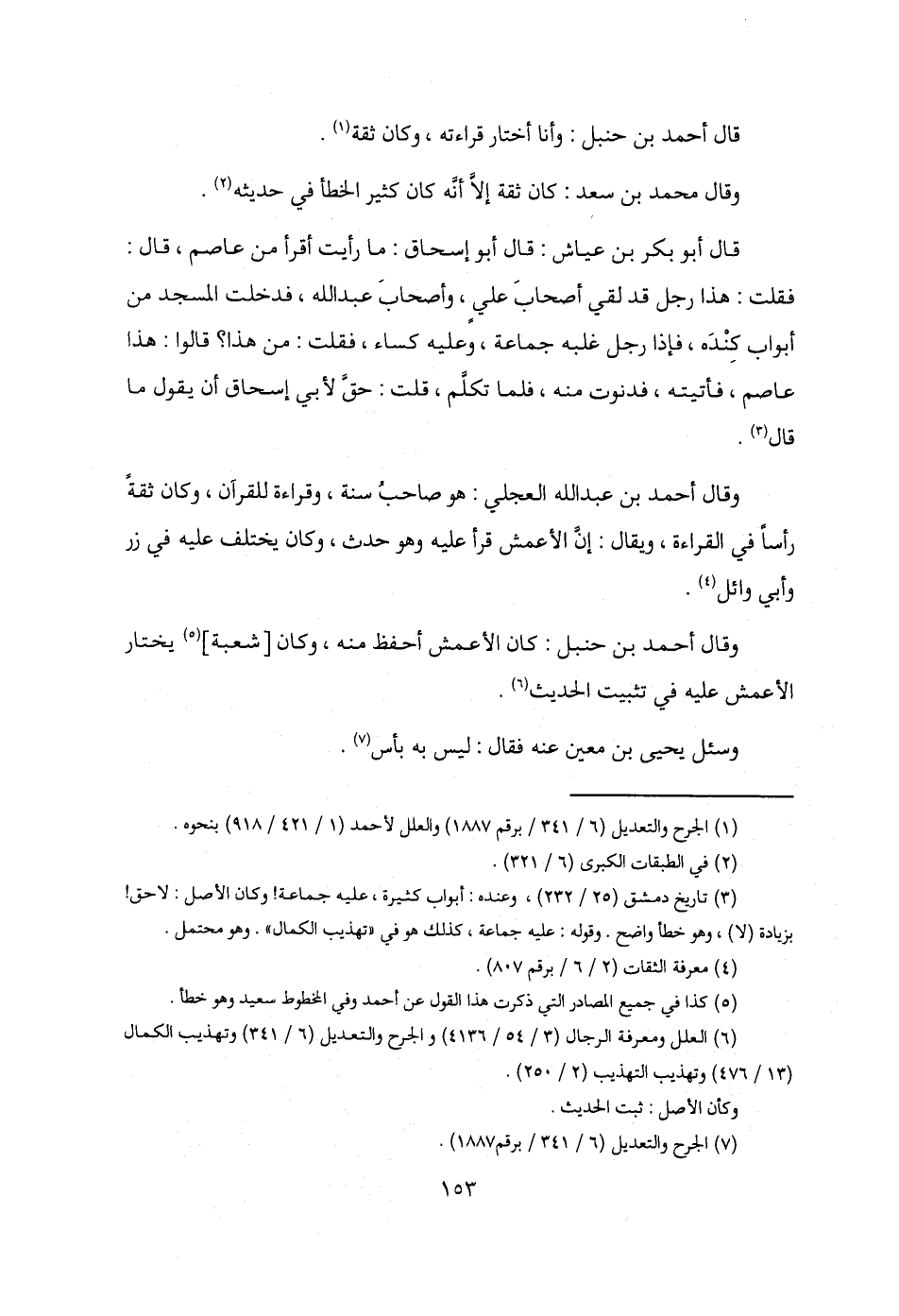 (¬6) العلل ومعرفة الرجال (3/ 54 / 4136) والجرح والتعديل (6/ 341) وتهذيب الكمال (13/ 476) وتهذيب التهذيب (2/ 250).