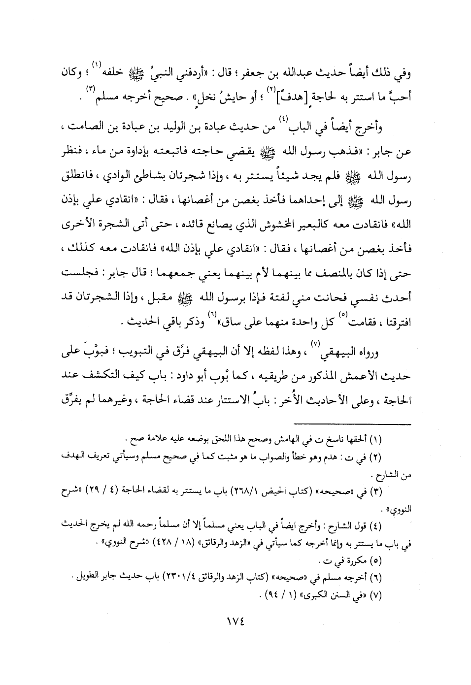 (¬3) في "صحيحه" (كتاب الحيض 1/ 268) باب ما يستتر به لقضاء الحاجة (4/ 29) "شرح النووي".