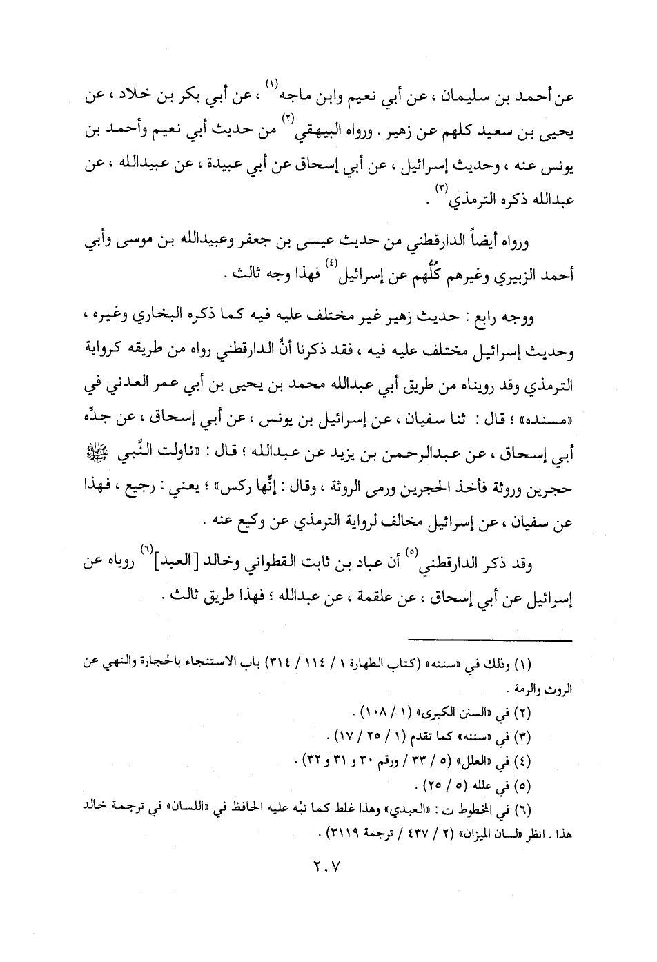 (¬1) وذلك في "سننه" (كتاب الطهارة 1/ 114 / 314) باب الاستنجاء بالحجارة والنهي عن الروث والرمة.