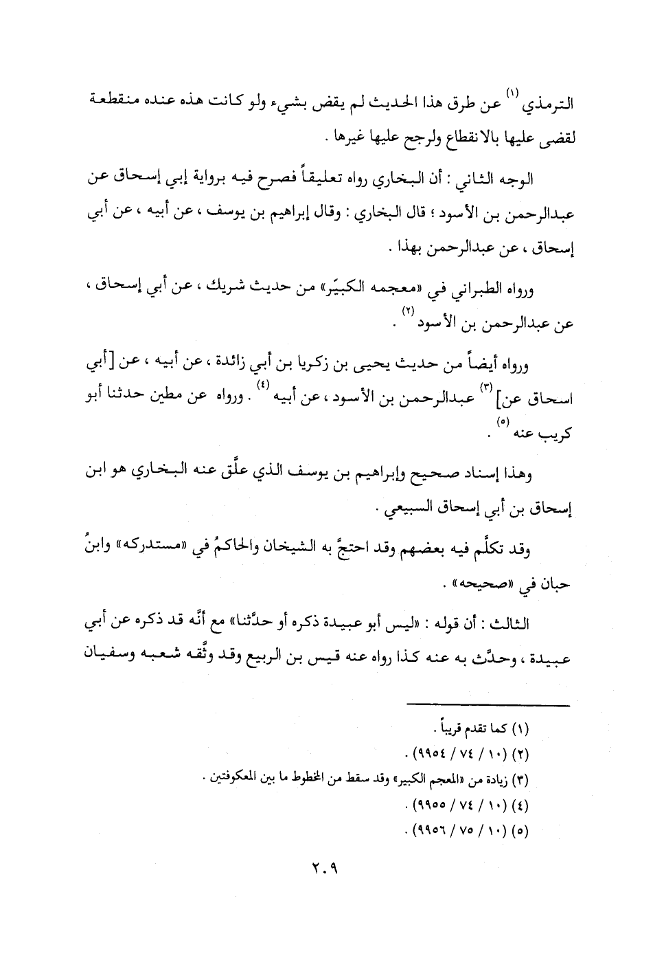 الوجه الثاني: أنَّ البخاري رواه تعليقًا فصرح فيه برواية إبي إسحاق عن عبد الرحمن بن الأسود؛ قال البخاري: وقال إبراهيم بن يوسف، عن أبيه، عن أبي إسحاق، عن عبد الرحمن بهذا.