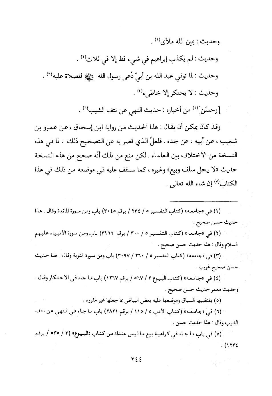 (¬7) في باب ما جاء في كراهية بيع ما ليس عندك من كتاب "البيوع" (3/ 535 / برقم 1234).