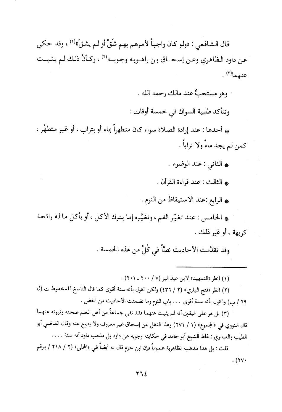 وتتأكد طلبية السواك في خمسة أوقات: