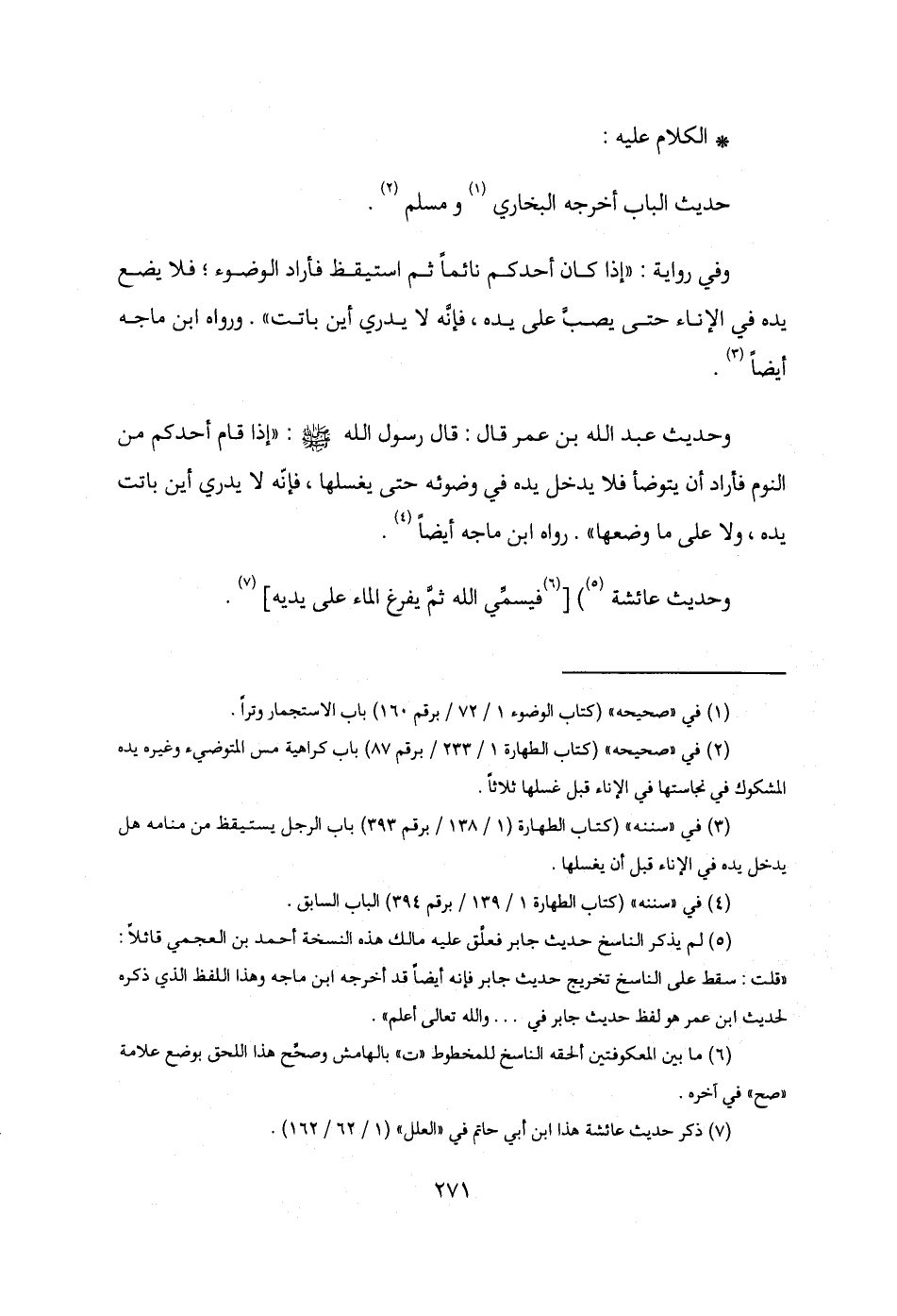 (¬3) في "سننه" (كتاب الطهارة (1/ 138 / برقم 393) باب الرجل يستيقظ من منامه هل يدخل يده في الإناء قبل أن يغسلها.