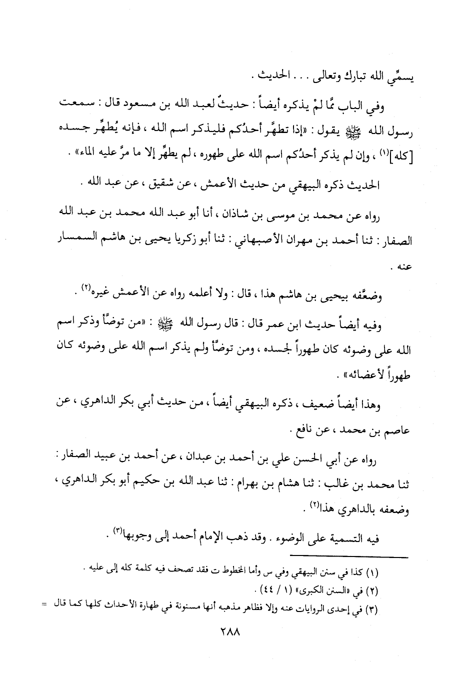 فيه التسمية على الوضوء. وقد ذهب الإمام أحمد إلى وجوبها (¬3).