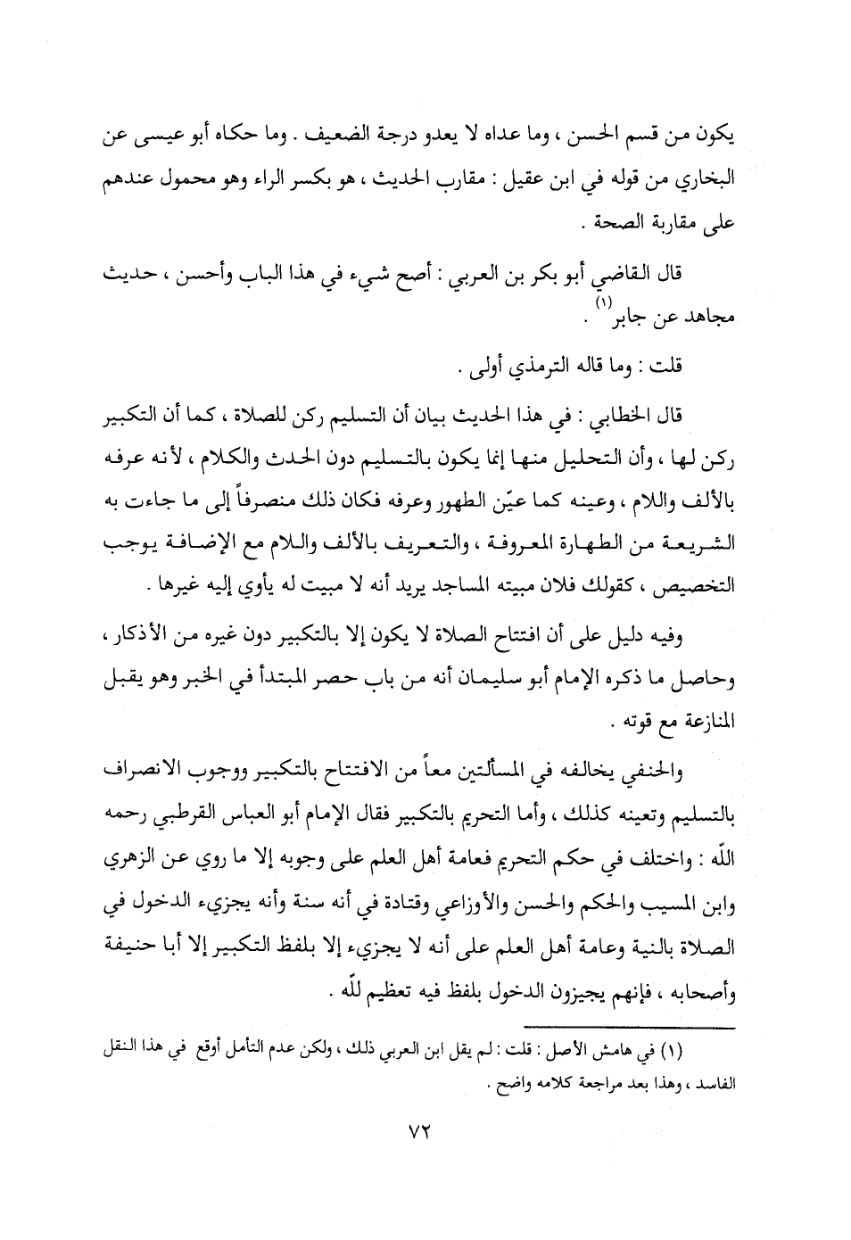 (¬1) في هامش الأصل: قلت: لم يقل ابن العربي ذلك، ولكن عدم التأمل أوقع في هذا النقل الفاسد، وهذا بعد مراجعة كلامه واضح.
