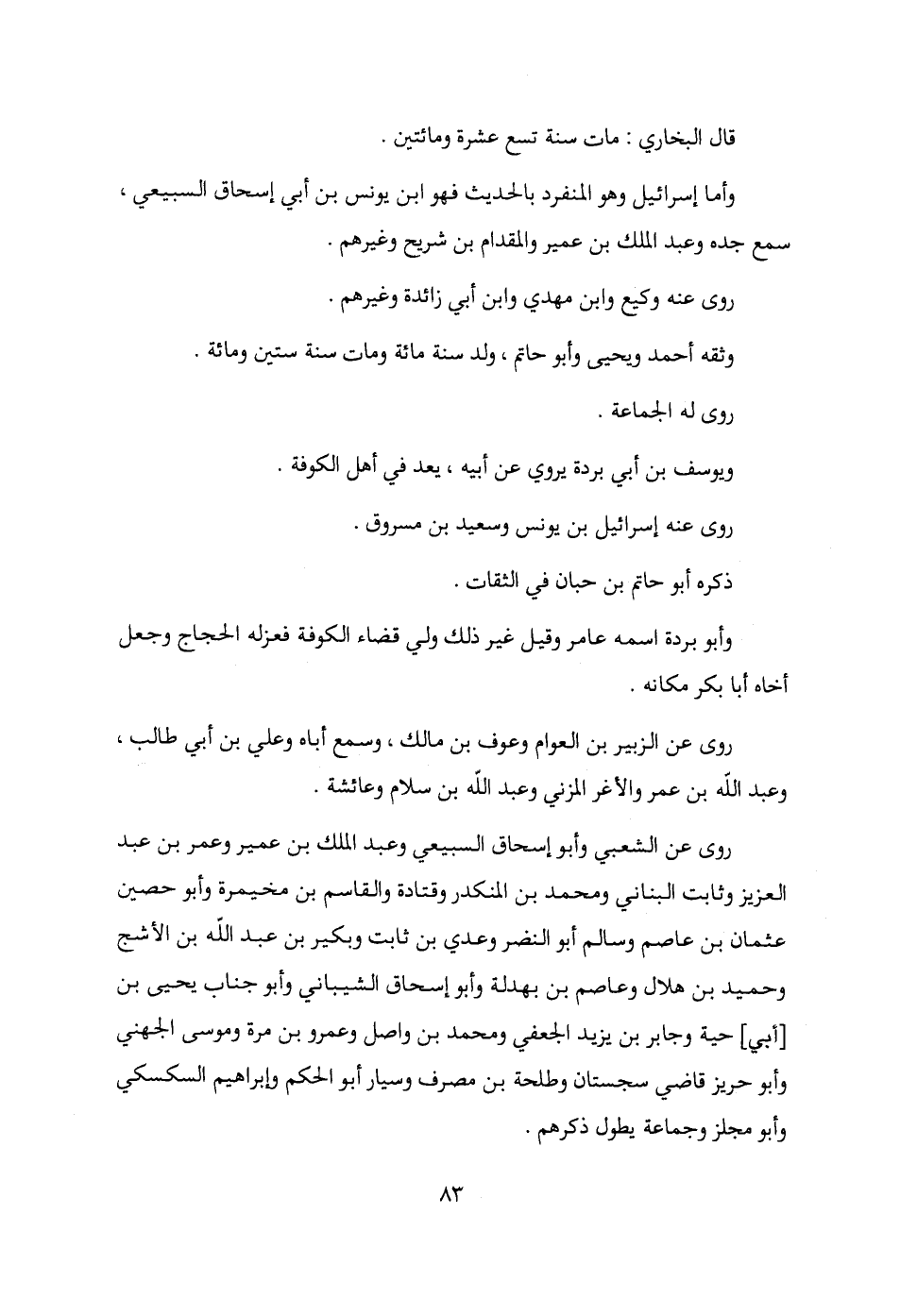 وأما إسرائيل وهو المنفرد بالحديث فهو ابن يونس بن أبي إسحاق السبيعي، سمع جده وعبد الملك بن عمير والمقدام بن شريح وغيرهم.