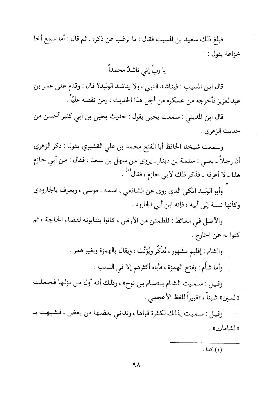 فبلغ ذلك سعيد بن المسيب فقال: ما نرغب عن ذكره. ثم قال: أما سمع أخا خزاعة يقول: