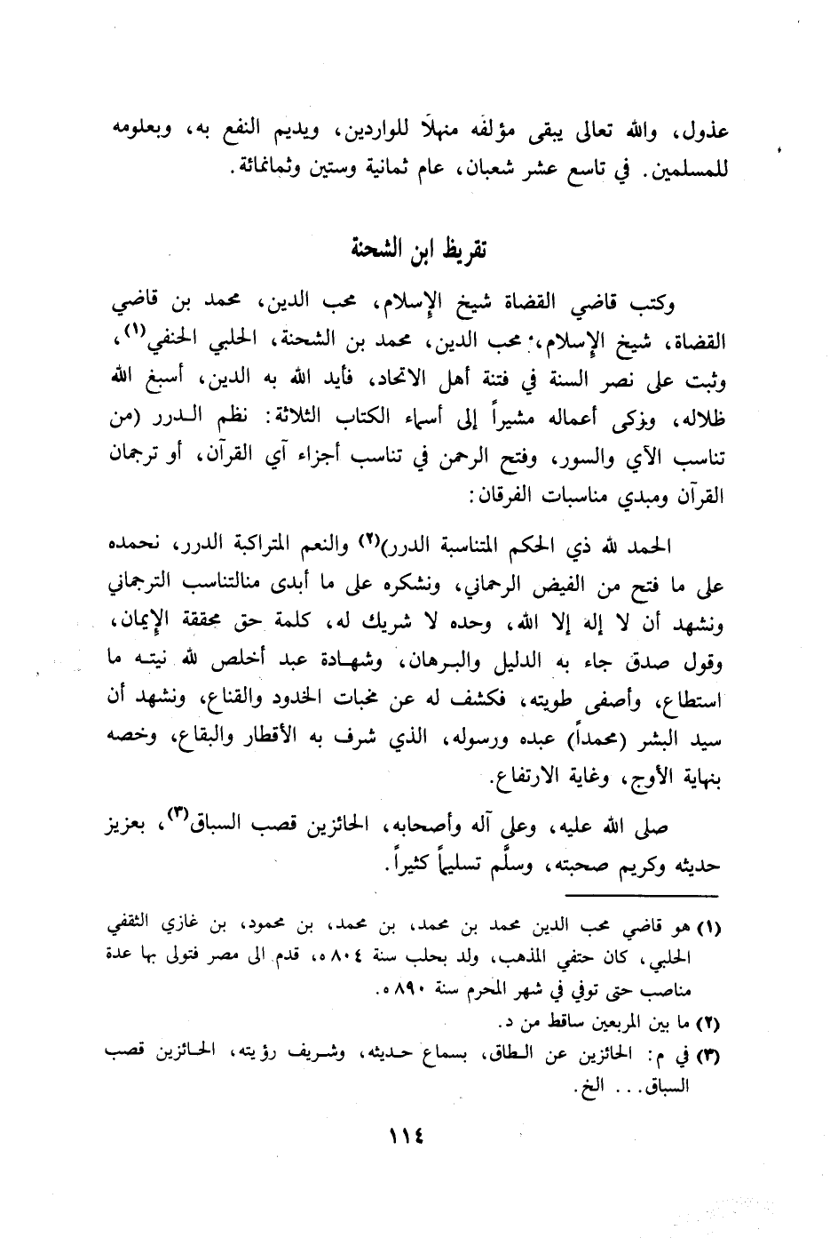 وكتب قاضي القضاة شيخ الإِسلام، محب الدين، محمد بن قاضي