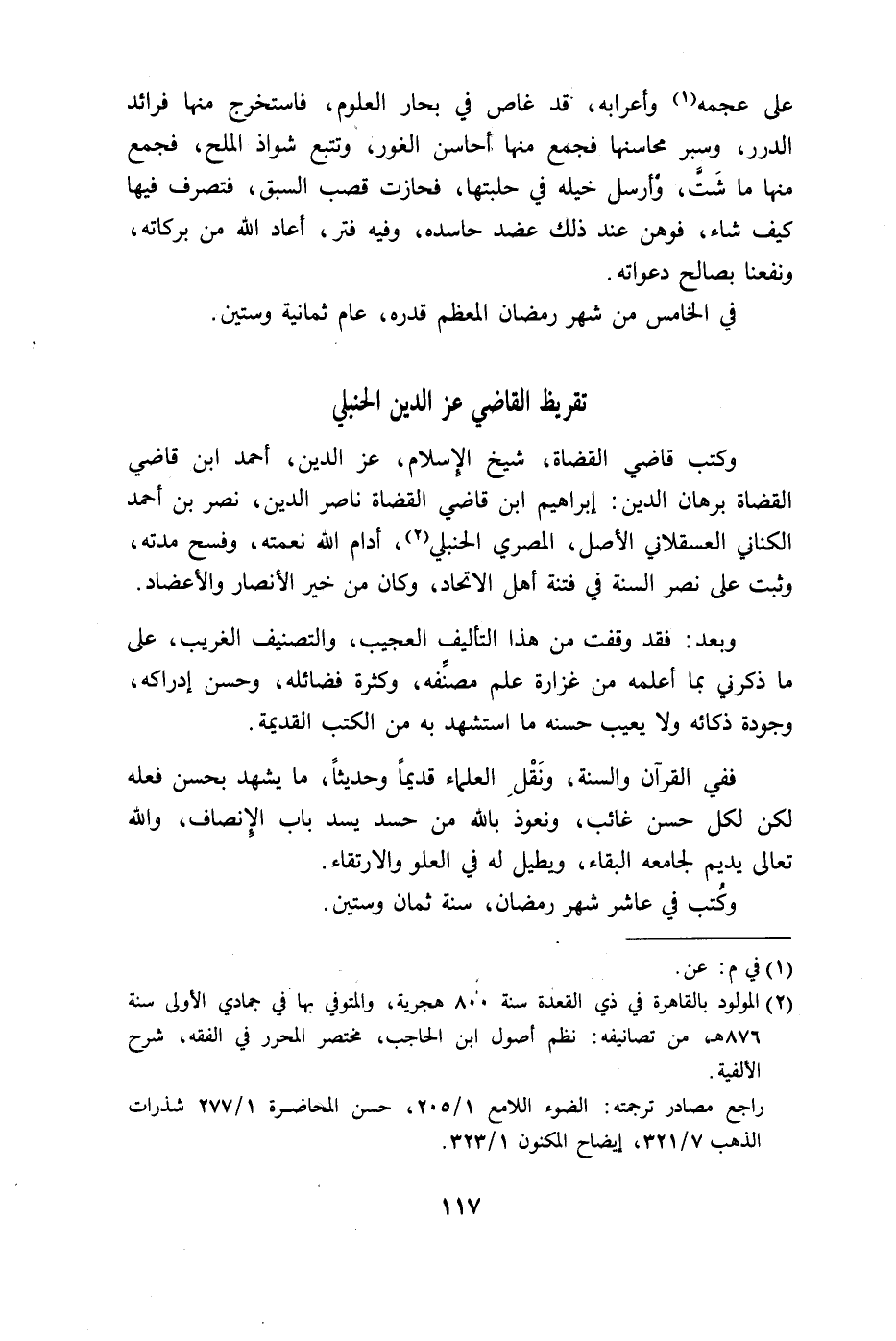 وكتب قاضي القضاة، شيخ الإسلام، عز الدين، أحمد ابن قاضي