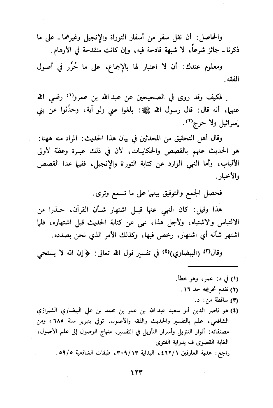 الألباب، وأما النهي الوارد عن كتابة التوراة والِإنجيل، ففيما عدا القصص