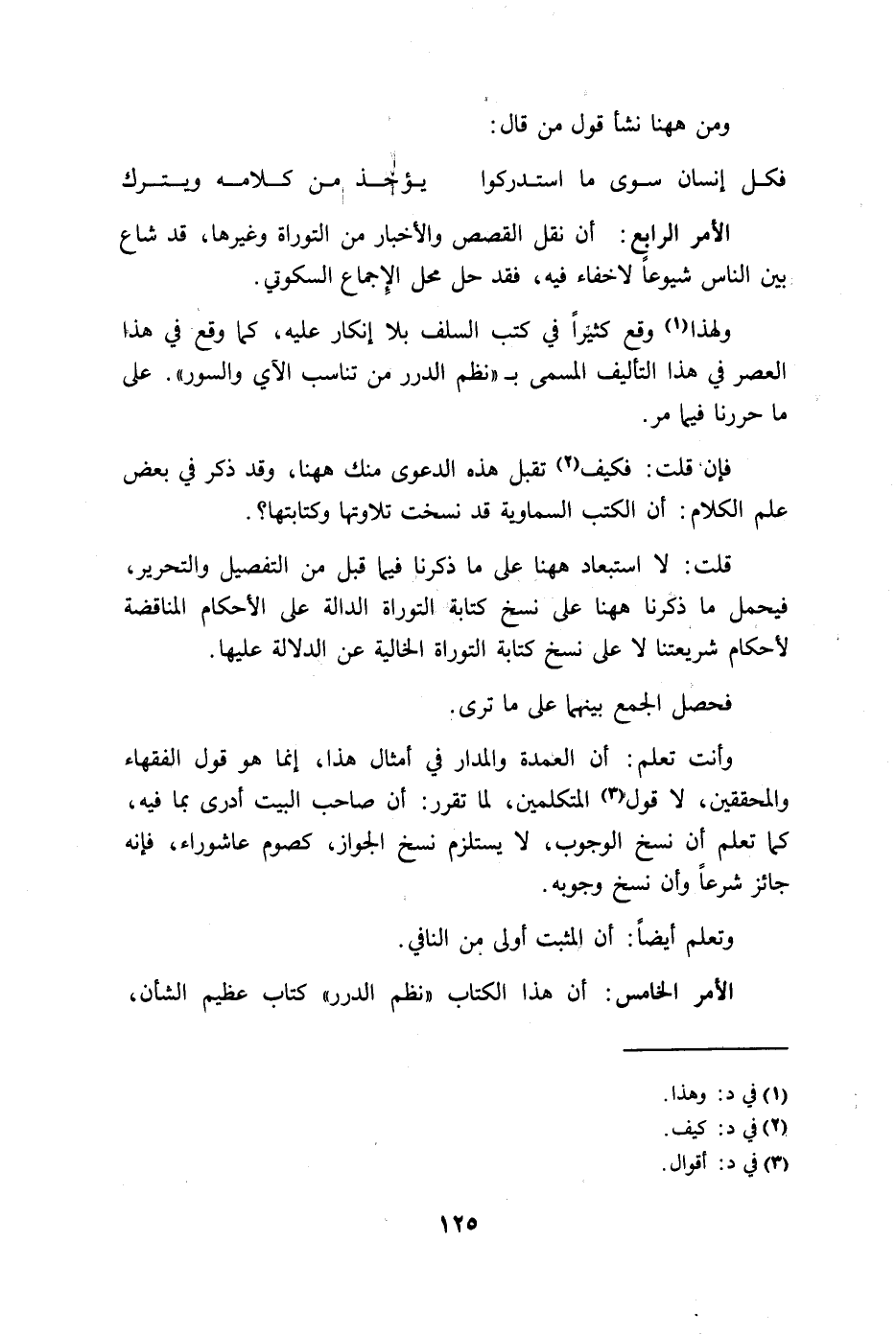 الأمر الخامس: أن هذا الكتاب "نظم الدرر" كتاب عظيم الشأن،