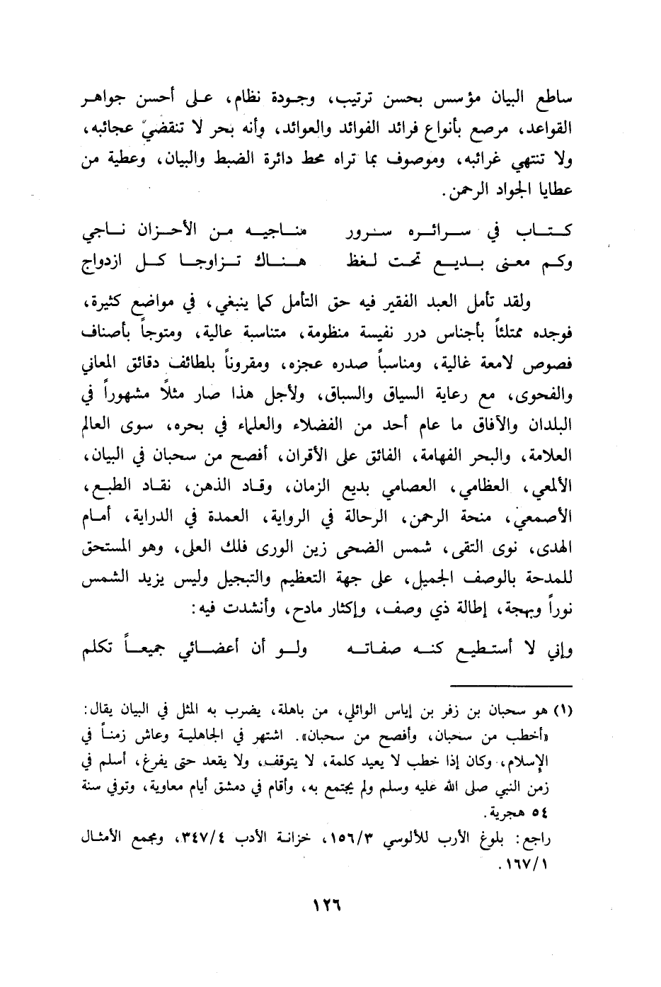 العلامة، والبحر الفهامة، الفائق على الأقران، أفصح من سحبان في البيان.