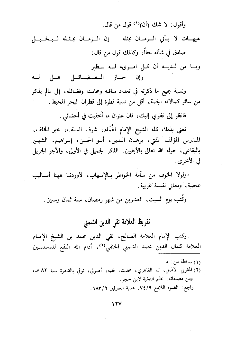 العلامة كمال الدين محمد الشمني الحنفي، أدام الله النفع للمسلمين